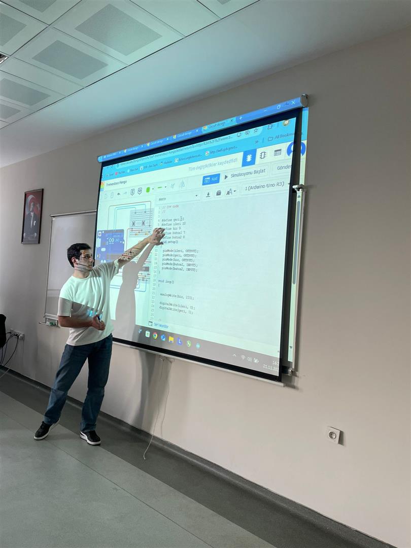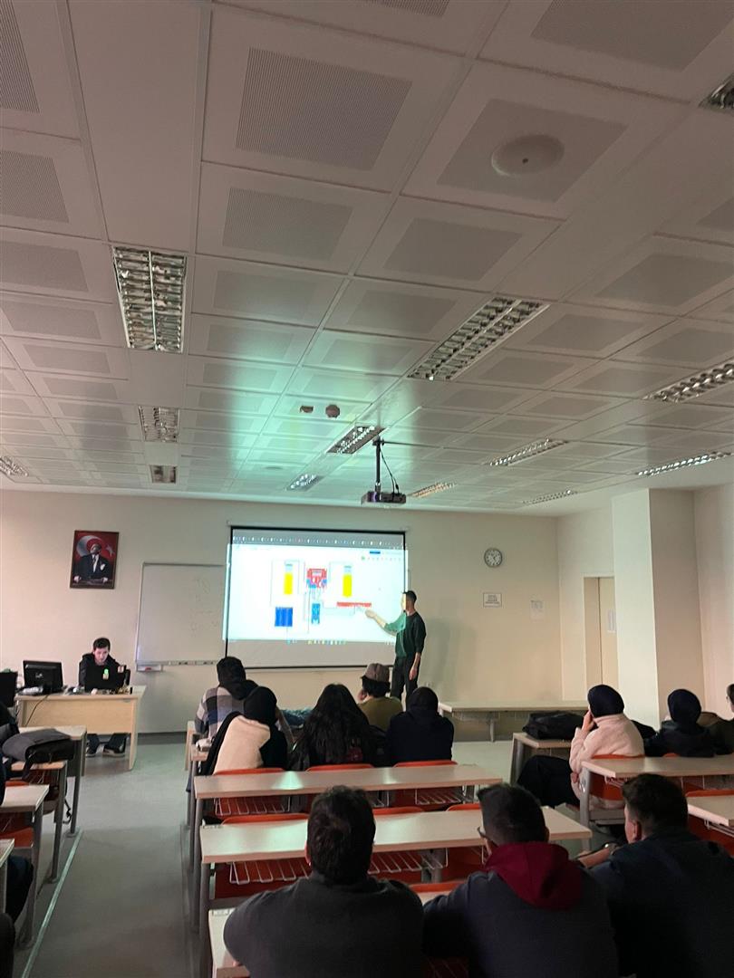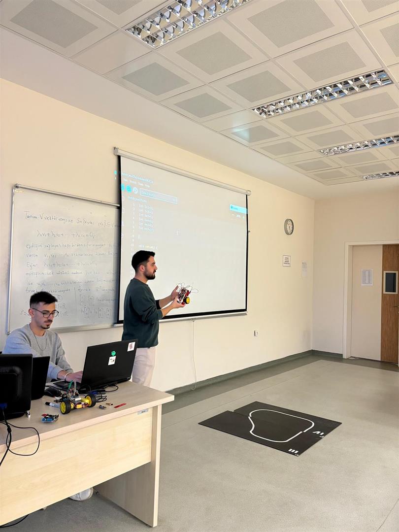 Bölümümüz "Mekatronik Topluluğu" tarafından “Çizgi İzleyen Robot Yarışması” kapsamında bir dizi eğitim gerçekleştirildi. Bu doğrultuda ilk eğitimler, 21 Kasım 2025 ve 24 Kasım 2025 tarihlerinde düzenlenen "Temel Robotik Eğitimi" ile başlamıştır. Bu eğitimlerde katılımcılara; robotik tasarım, modelleme süreci ve temel robotik kodlama hakkında kapsamlı bilgiler verilmiştir. İkinci etap eğitimler ise 26 Kasım 2025 ve 27 Kasım 2025 tarihlerinde gerçekleştirilmiş olup, bu süreçte çizgi izleyen robotların çalışma mantığı, yazılım kodları ve yapım aşamaları detaylı bir şekilde anlatılmıştır.