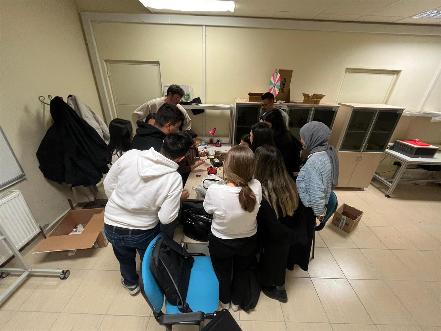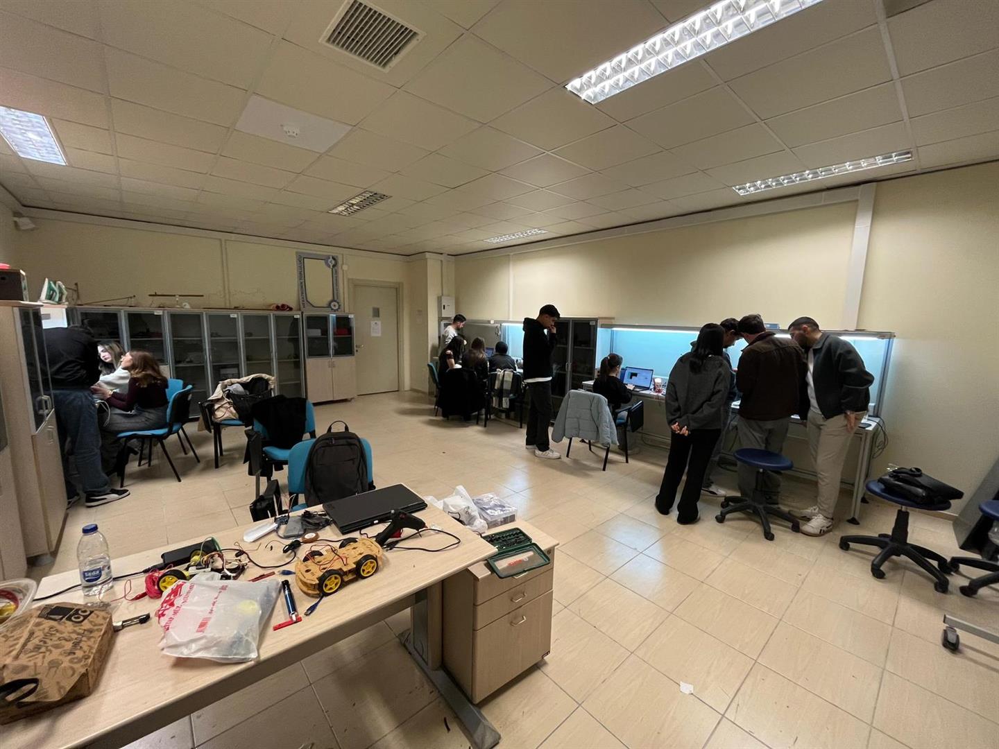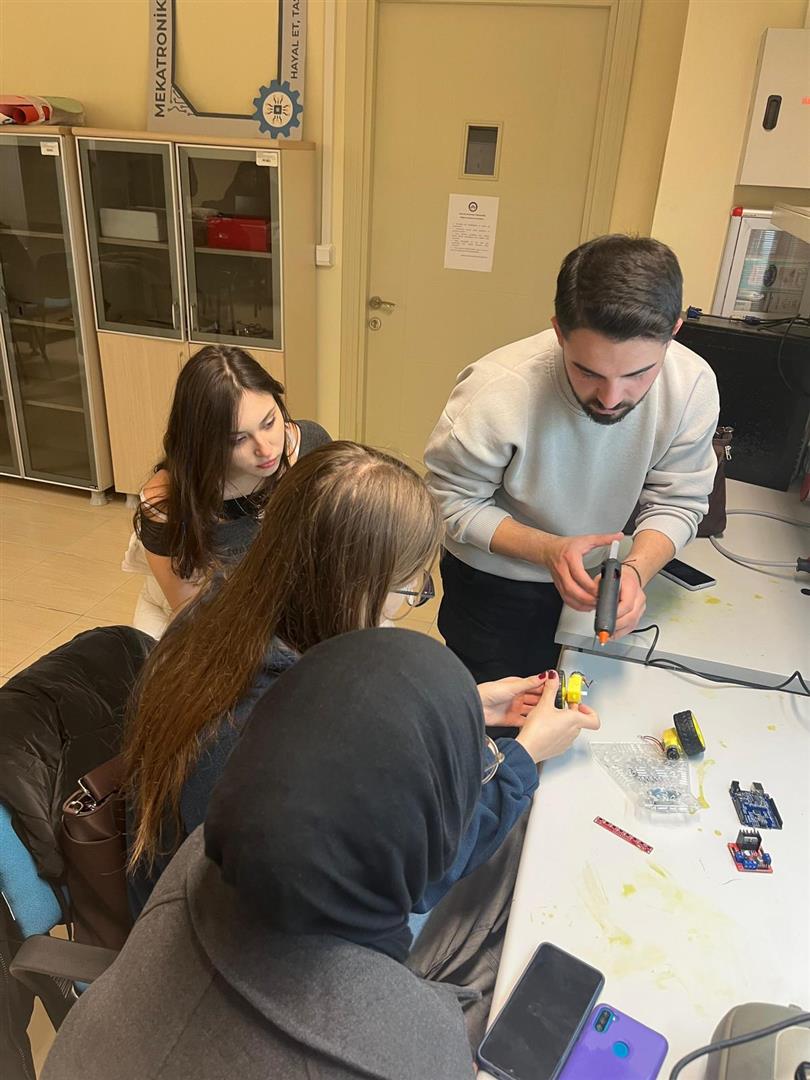 Bölümümüz "Mekatronik Topluluğu" tarafından “Çizgi İzleyen Robot Yarışması” kapsamında teorik eğitimlerin ardından "Robotik Uygulama Eğitimi" çalışması gerçekleştirildi. 1 Aralık 2025 – 6 Aralık 2025 tarihleri arasında laboratuvarlar katılımcılara açık tutulmuş ve yarışmacı öğrenciler, danışmanların da desteğiyle robot çalışmalarını başarıyla tamamlamışlardır.